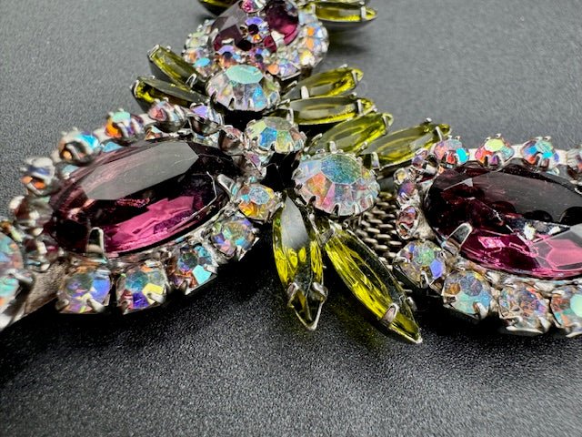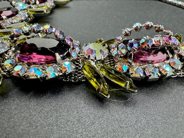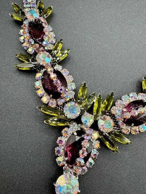 D&E / Juliana AB and Caged Amethyst Glass Rhinestone "Pineapple" Vintage Necklace and Earring set